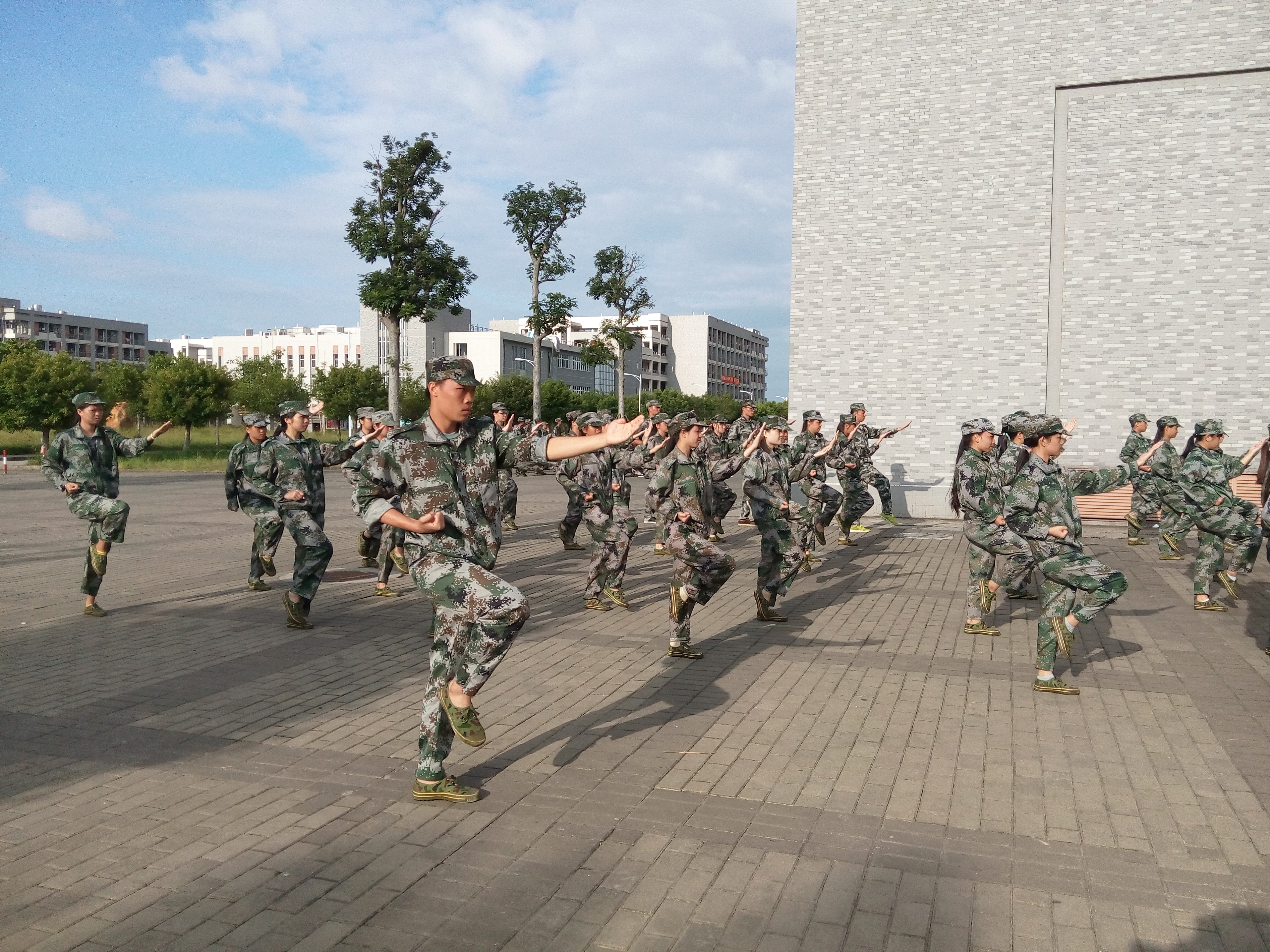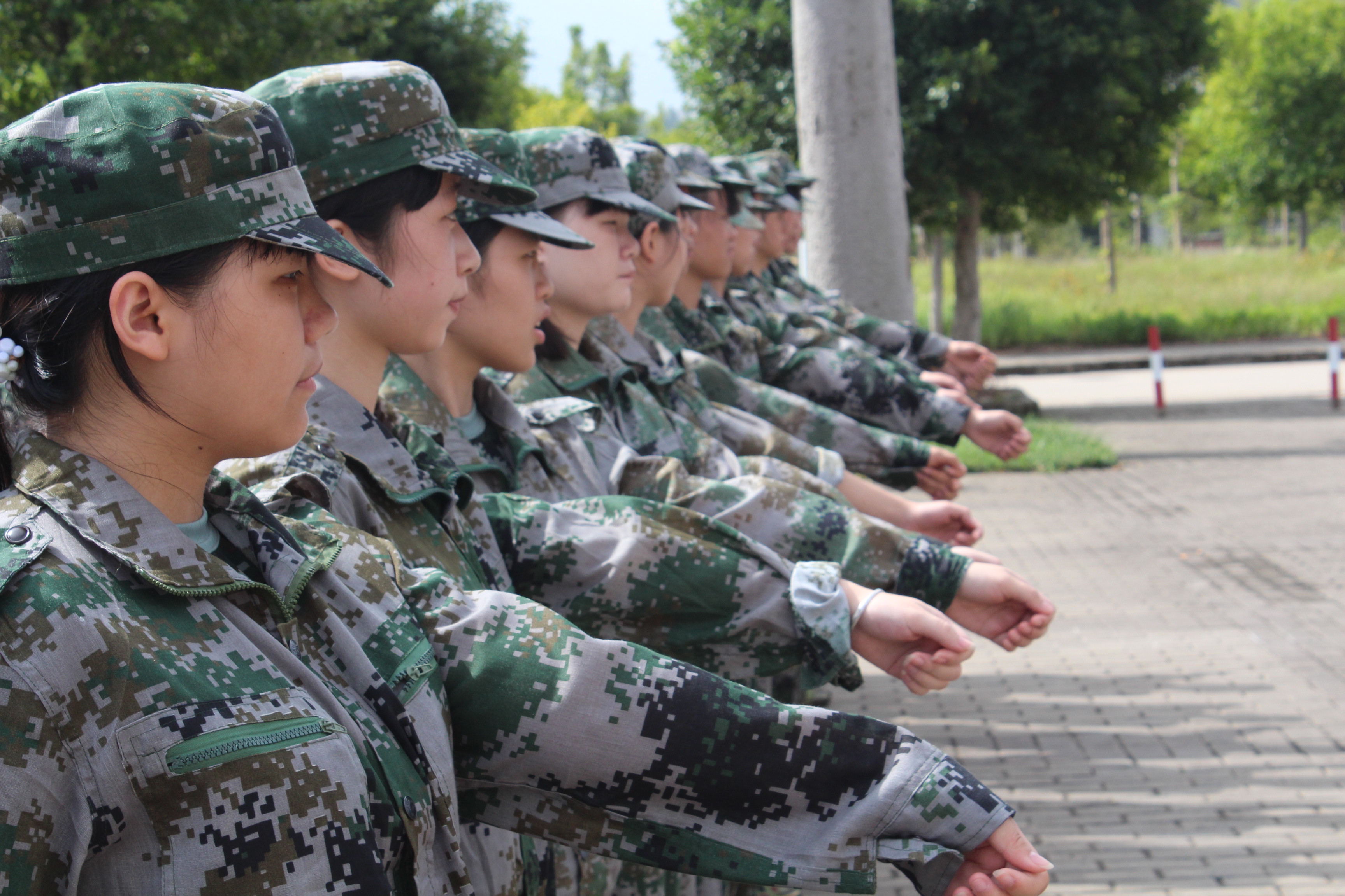 每日早上6点半起来后整理内务,7点集合出操,8点正式训练,每天8个小时训练,风雨无阻。从最基本的站军姿、队列训练,到军体拳的学习。热火朝天的太阳下,一动不动地站着,汗珠从毛孔中不断地冒出,连成一线,顺着鼻梁、眼眶不住地滑落。但是军训学员并没有去擦,而是坚持着站军姿的动作,忍受着太阳的炙烤以及汗水滑落的痛痒。全体军训学员发扬着军训中流血、流汗、不流泪,掉皮、掉肉、不掉队,不怕苦、不怕累的优良传统和作风。休息期间,跟教官学习军歌,唱出灿烂的青春旋律。