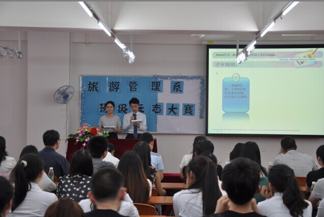 5月22日晚上,旅游管理系班级标志大赛正式开始,清远综合办韦秀华主任、旅游管理系胡家夏主任、张彦老师、马佩佩老师以及各系团总支学生会指导老师出席了本次比赛,并且学生工作处蔡文军老师、院团委刘晓玲老师及计算机系陈华老师担任了评委。在宣传视屏播放后,本次比赛正式拉开帷幕,现场的掌声和欢呼声如雷鸣般爆发。