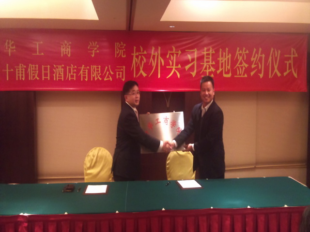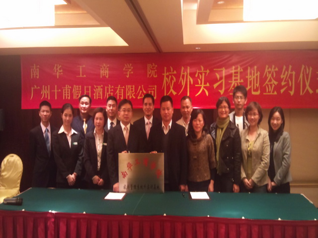 12月7日下午,旅游管理系与广州十甫假日酒店举行校外实训基地签约暨挂牌仪式成功举办。广州十甫假日酒店财务总监李启明、各部门经理,学院招就办黄玉良主任、旅游管理系胡家夏主任、谭金凤副主任及张树清、陈丽芳、方永航、吴双丽老师出席了该仪式。仪式由十甫假日酒店人力资源总监王英主持。