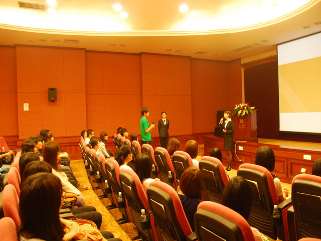在东方宾馆一号会议厅,东方宾馆人力资源部总监杜常青代表酒店对师生们表示了热烈的欢迎。人力资源培训部主管董小姐采取互动的方式详细介绍了东方宾馆的历史、企业文化、酒店各部门情况,学生表现出极大的兴趣,仿佛感受到自己已是东方宾馆的一分子。学生们纷纷提出关于酒店福利、人才培养计划、住宿、岗位分配、技能及语言要求等问题,杜总监给予了详细的解答,同时对同学的关心与积极好问表示了赞赏和肯定。随后,酒店安排学生参观酒店各个部门,让同学们对酒店有了进一步的感官认识。在参观过程中,同学们谨遵酒店礼仪要求,展现了良好的礼仪素质。