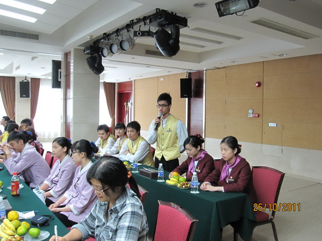 接着,同学们畅所欲言,活跃了座谈会。他们纷纷道出自己的实习感受和看法:实习过程中,除学习业务技能外心态及为人处事方面得到了最大锻炼;在同学、家人、领班、主管、老师的指导鼓励下不断坚持、磨练,收获喜悦。同时,同学们也从管理层面提出了自身合理化的建议,比如,团队客人的预订未住与散客入住的问题,实习生培训问题,信息沟通问题等等。酒店方领导当场肯定了同学们工作中的不断思考,并针对同学们提出问题一一作了详尽解答。