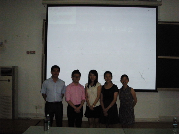 ▲与南湖国旅工作人员招聘现场合照(左至右:梁滔滔老师、培训主管李正波、招聘副主管彭茵茵、人事主管彭绮琳、詹小丽老师)