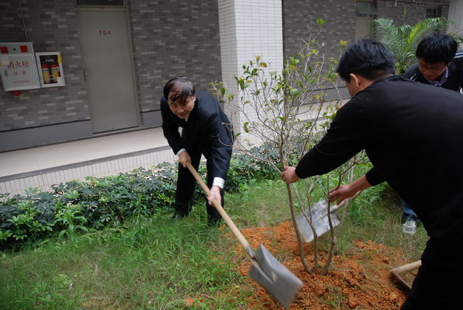 学院院长易江博士栽种桂花树