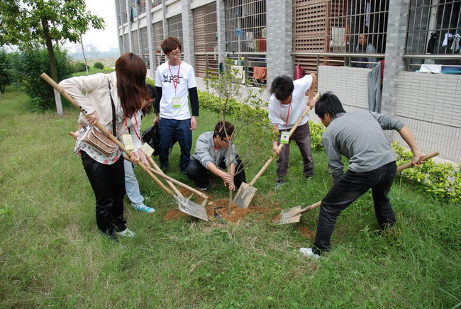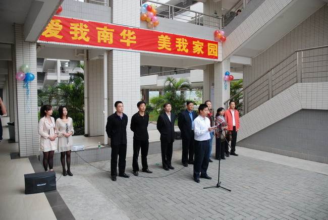暖风吹得人人醉,春风已绿岭南天。2010年3月30日上午,旅游管理系(清远校区)在清远校区宿舍楼下进行了“爱我南华,美我家园”的植树活动。