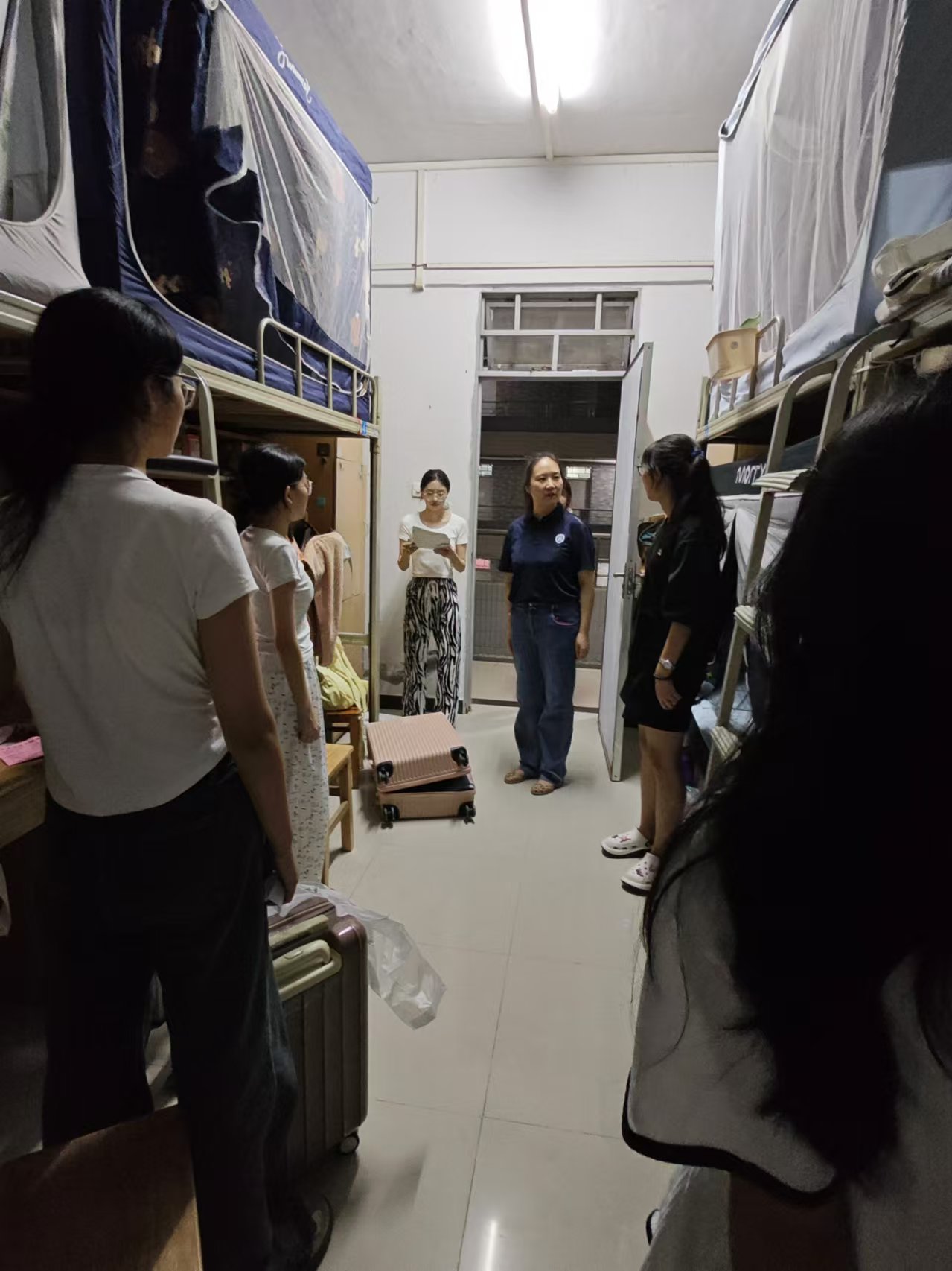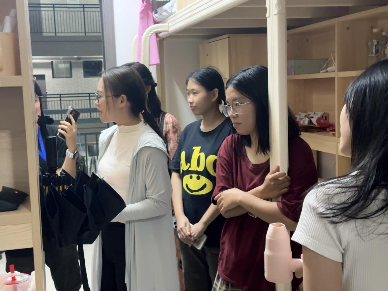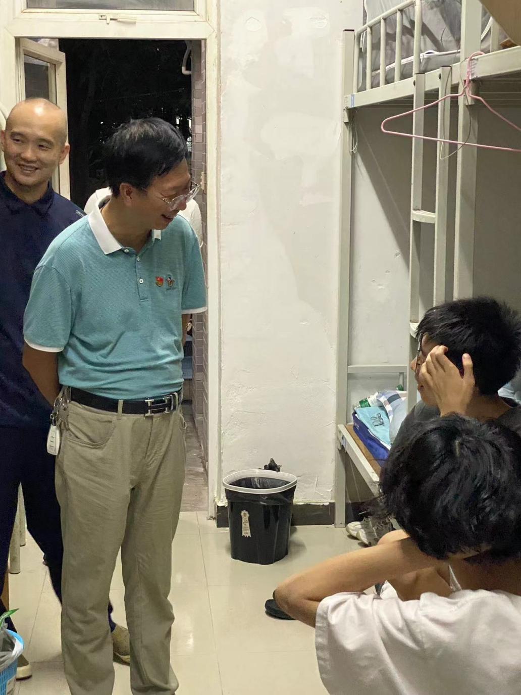 为深入了解 2024 级新生入学状况,增进师生之间的互动,并当面解决新生所面临的实际问题,以引导新生迅速适应新环境。 9 月 13 日晚,文化旅游学院党支部书记夏建兵、学工办主任熊汝鑫 、 辅导员 刘景辉、王宏博、岑锦明以及学生干部 深入 2024 级新生宿舍,了解新生的适应情况,送去学院的关怀和温暖,表达对新同学的欢迎和慰问。