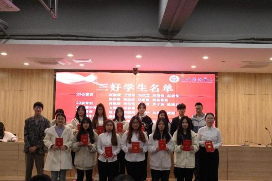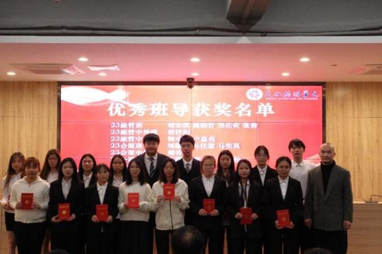 颁奖典礼环节,学院对一系列表现卓越的个人和集体进行了表彰,包括先进班级、优秀班导、军训优秀学员、国家奖学金获得者等,获奖者们在台上接受了荣誉证书。征文比赛和演讲比赛的获奖者也得到了表彰,从优秀奖到一等奖,每一位获奖者都是文旅学院的骄傲,他们的作品和演讲不仅展现了个人的才华,也体现了学院教育的成果。