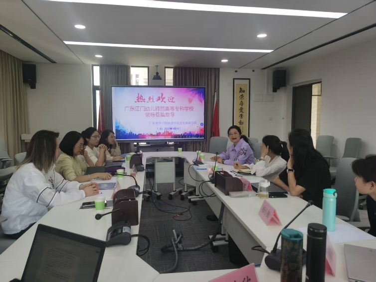 广东江门幼儿师范高等专科学校继续教育学院院长谢丛蓉、艺术教育学院器乐教研室主任雷励、基础教育学院教师袁梵,以及我校旅游管理专业全体教师参与会议。