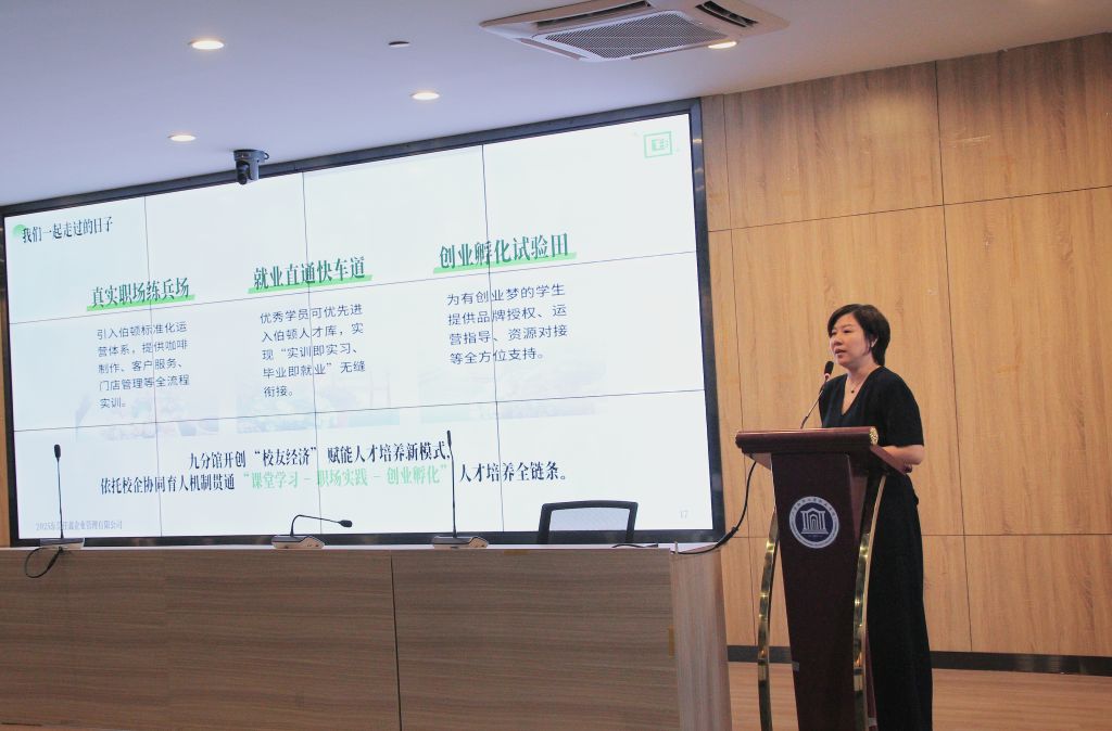 会上,黄宗亮回顾了任鑫集团与学校长达25年的合作历程,重点介绍“工学交替”订单班模式:学生在校期间即参与企业真实项目,集团定期安排技能大师现场指导,优秀毕业生可直接进入旗下餐饮门店,享受管理培训生待遇。24级烹饪工艺与营养专业严小蝶现场分享了自己加入订单班的成长收获。