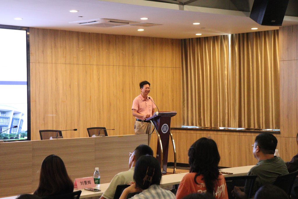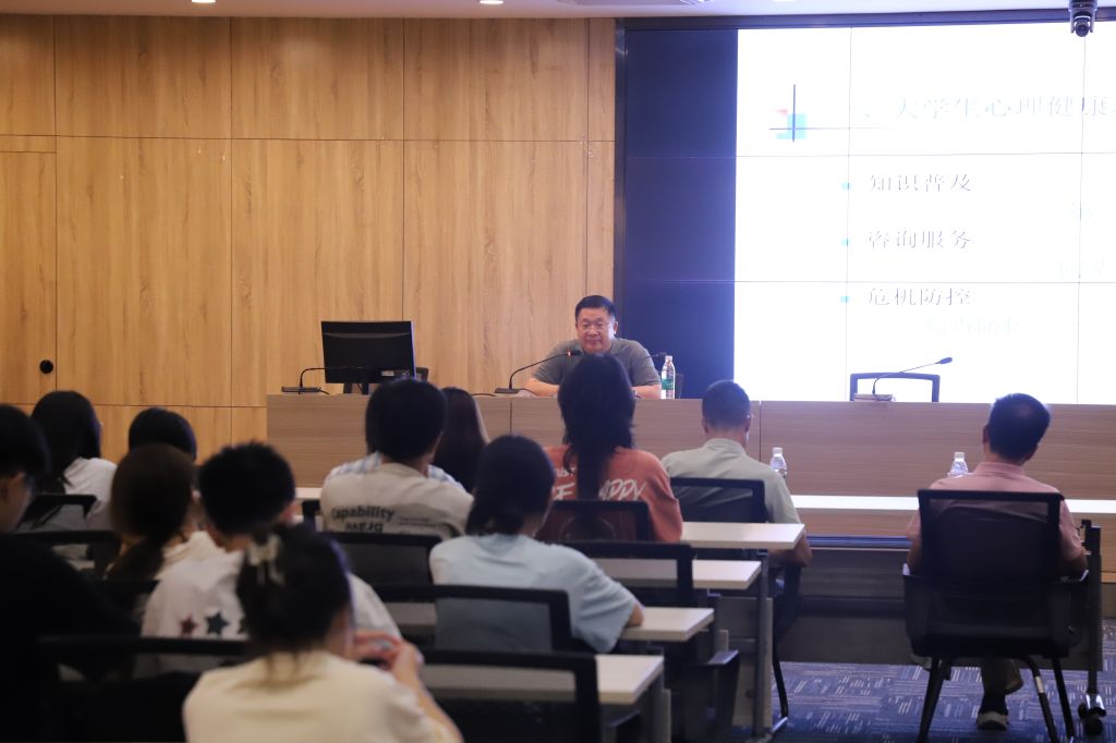 学院党总书记夏建兵为讲座致辞,他在致辞中希望学生骨干将朋辈支持理念转化为行动,成为同学们的“知心人”与“护航者”。