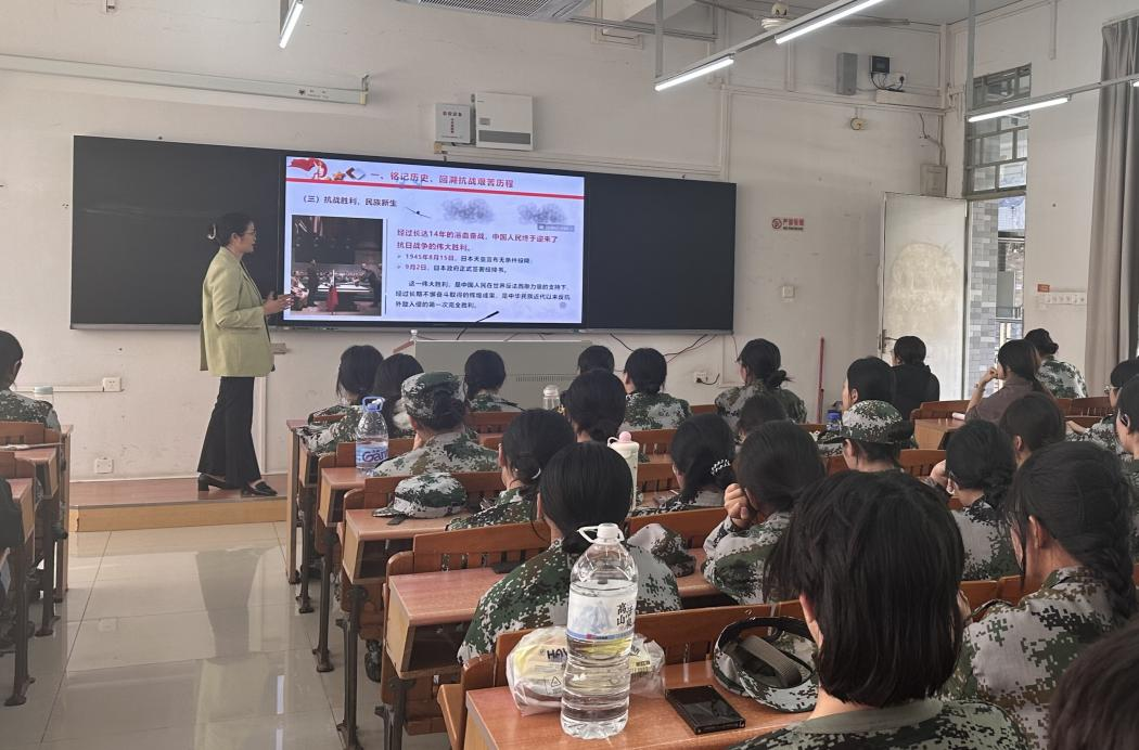 课程围绕“铭记抗战历史,弘扬民族精神,勇担时代使命”展开。谭金凤带领同学们回顾了抗日战争艰苦卓绝的历程,阐释了伟大抗战精神的深刻内涵与时代价值。她要求全体同学要深刻认识历史、敬畏历史,从历史中汲取精神力量,筑牢理想信念根基。