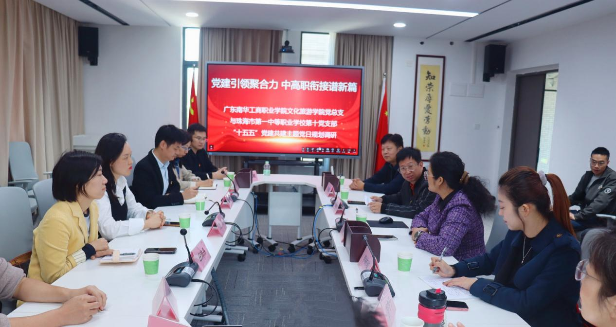 2025年11月26日下午,广东南华工商职业学院文化旅游学院党总支部与珠海市第一中等职业学校第十党支部开展“十五五”党建共建主题党日活动。