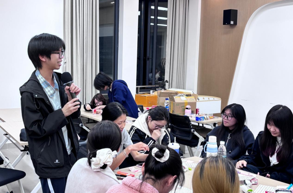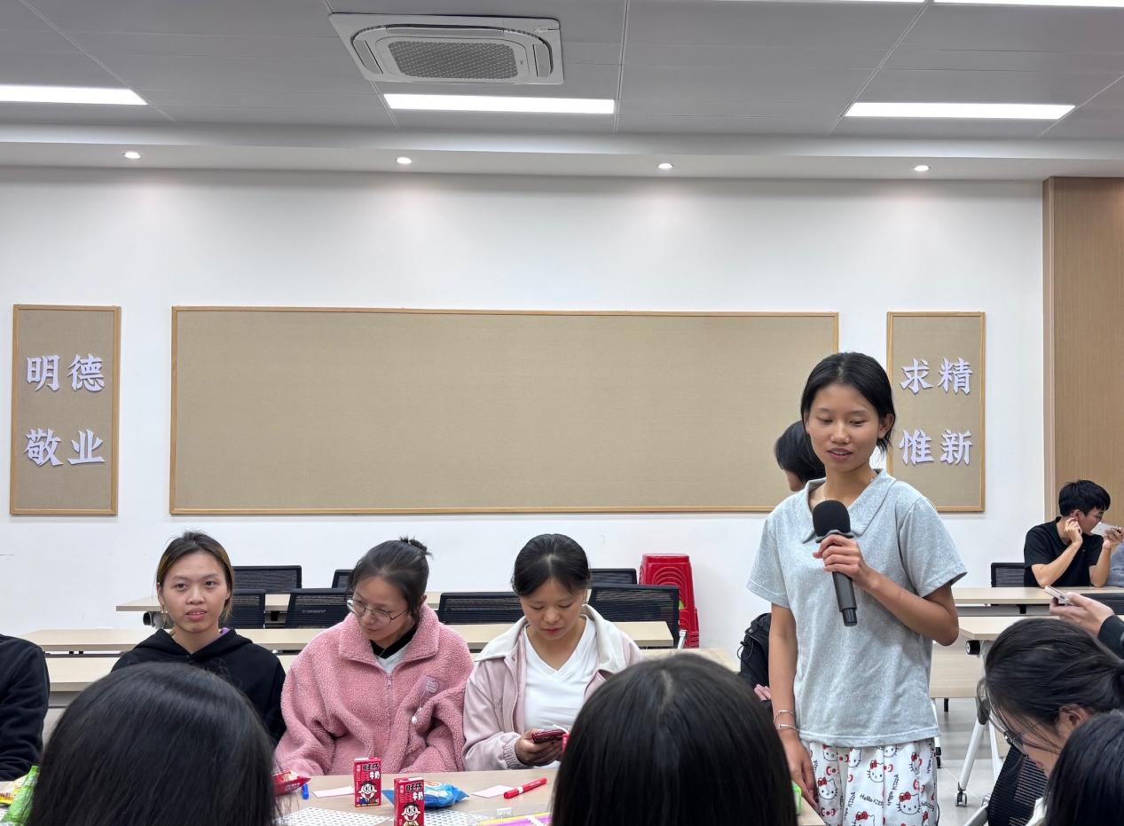 随后以“宿舍生活小共鸣”作为切入点,借助击鼓传花的游戏,引导大家分享宿舍里的乌龙趣事、暖心瞬间以及共同的经历,现场氛围轻松且活跃。