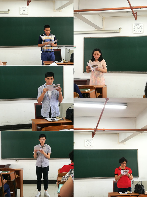 图三:教师们宣读学习学院《教职工员工手册》各项规定