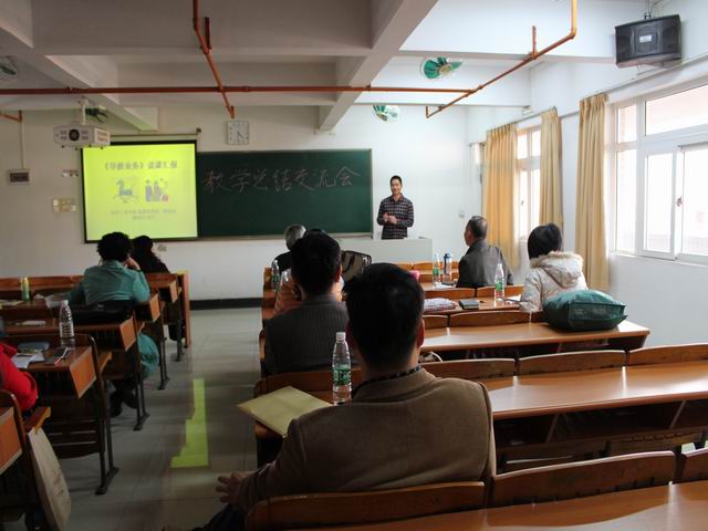 在交流环节,分别由梁滔滔老师作《导游业务》课程的说课展示,詹小丽老师作《旅游英语》课程标准的制定解说,展现了旅游管理系教师的综合素质能力及其在课程教学改革方面所取得的成绩,很好地达到了相互促进、相互提高的目的,营造出浓厚的教研氛围。