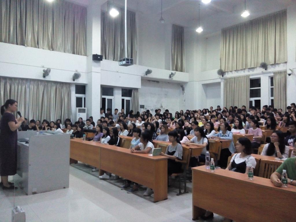 2016年10月23日晚上8点,旅游管理系在清远校区教学楼101课室为全体2016级同学们举行了《英语晨读》课程说明会。本次会议邀请了旅游管理系谭金凤副主任、关惠贞老师、黄隽老师、杨小衡老师出席,并由酒店管理专业负责人陈丽芳老师主持。