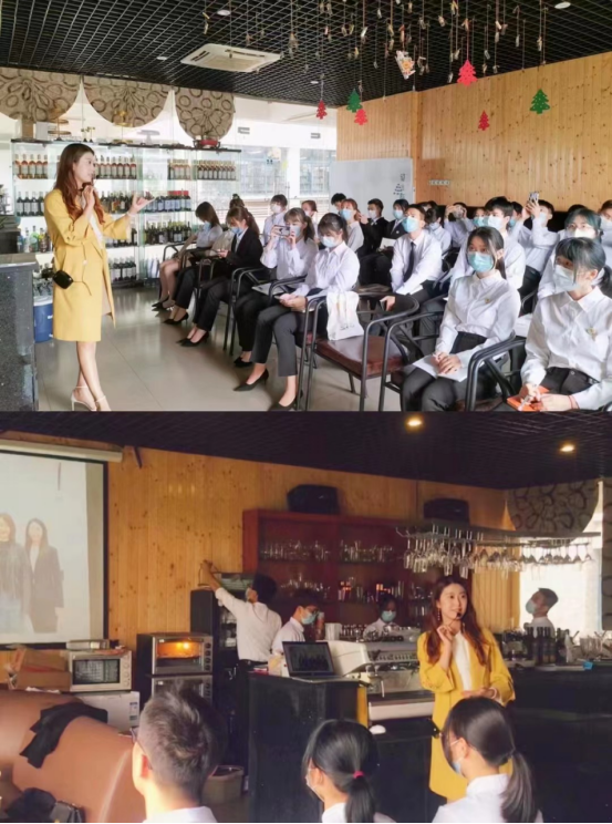 2022年4月15日下午3点30分,文化旅游学院酒店管理系理事会于清远校区图书馆三楼酒吧服务与管理实训室(九分馆)举办中餐宴会服务技能培训及餐饮部新品研发试吃交流会。出席此次培训的有烹饪工艺与营养专业负责人兼酒店管理系理事会名誉副会长张树清、酒店管理与数字化运营专业负责人兼理事会会长李林玫、烹饪工艺与营养专任教师兼理事会副会长黄智洋以及全体酒店管理系理事会学生。