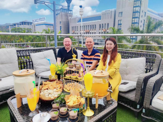 培训的理论部分结束后,理事会全体学生在九分馆室外开展实操训练。李林玫老师展示中餐宴会铺台布、摆放餐具、叠餐巾等技能,现场同学在老师们的指导下一一练习。同时,为强化团队内涵和专业服务,黄智洋老师带领共同创新并研发新品茶歇,餐饮部成员精心制作,师生一同品尝试吃交流,对于新品赞不绝口。