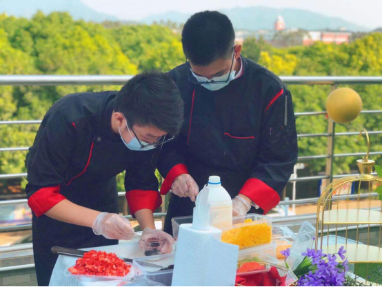 2021年12月24日下午2时,图书馆三楼酒吧服务与管理实训室(九分馆)迎来了广东南华工商职业学院第一届劳动教育月——“青春放彩,劳动光荣”西餐冷盘技能比赛。该比赛由劳动教育领导小组主办,教务处指导,文化旅游学院承办,文化旅游学院酒店管理系理事会协办。比赛同时受到广州富力君悦大酒店、广州柏悦酒店、清远市旅游协会、广州沐辰教育咨询有限公司、美林湖温泉大酒店及东莞市伯顿饮食服务有限公司等合作企业的大力支持。