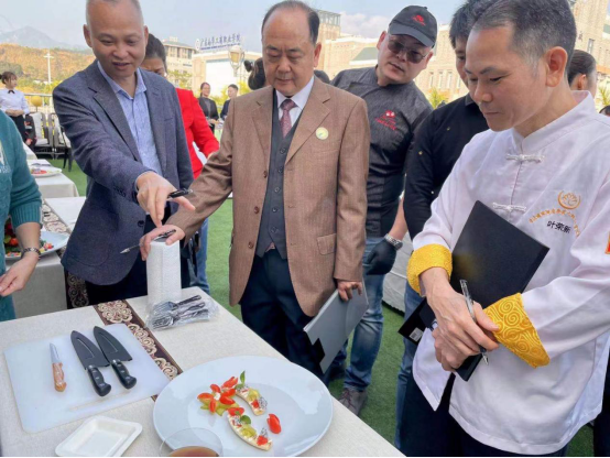 随后,清远美食文化产业协会首席顾问黄敏进行分享交流。他表示,参赛选手们既有各自独具特色之处,也有进一步提升的空间,希望同学们敢于挑战,不畏困难,积极发散创新思维,结合清远本地特色和季节特点,创造出更多精彩作品。