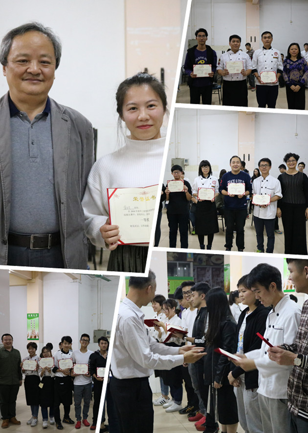 担任评委的有南海渔村有限公司人力资源部经理李凌燕、招聘专员郭凤鸣小姐,白天鹅宾馆厨师黄智洋先生,教务处张少华、苏兰英、胡宇子老师,黄埔综合办林香伦、李文芝、袁强、陈晓娜老师,旅游管理系张诗哲副教授、胡家夏主任、谭金凤副主任、黄隽老师。经过公正、公平、公开的评比,最终评出一等奖(黄丽贤)、二等奖(蔡骏腾、张隽荣、朱国盛)、三等奖(李正浩、黄晓璇、吴奎霖)等19位优秀选手,并颁发了证书。