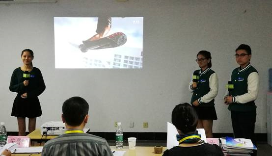 图四:二等奖团队比赛现场(14级会展专业姚碧君、陈霏、李锐彬同学)