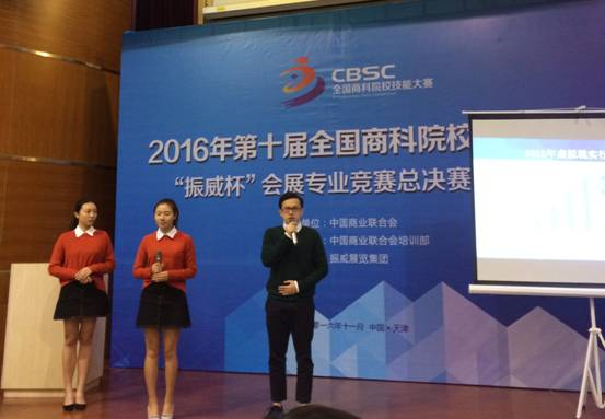 该竞赛是目前我国会展教育领域参与院校覆盖面最广、赛项设置最齐全、持续举办届数最多、参赛规模最大的专业赛事活动。大赛由全国商业联合会主办,天津滨海新区商务委与全国商业联合会培训部承办。本次大赛自今年4月份启动,历时8个月。在我院和系领导的指导和支持下,成功申报赛区后,陈晓华、陈屹珊、张亚红、王超、刘淑惠、梁滔滔等老师组成教师指导团队迅速展开参赛工作。5-10月份组织150多名会展专业学生报名和基础知识培训,6月份通过初赛的同学组成团队展开项目调研和立项分析,再次经过初赛、复赛层层选拔,最后选送出两支队伍参加全国总决赛。通过竞赛活动,达到了以赛促建、提升内涵、创建品牌的目的,也对外塑造了我院莘莘学子优秀的风采形象。