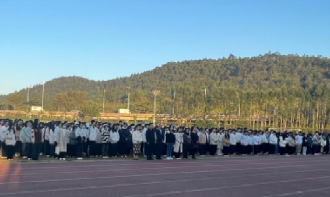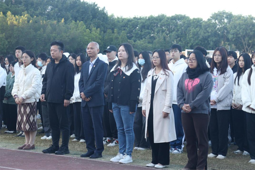 为深入学习贯彻党的二十大精神,激发广大师生爱国热情,大力弘扬劳模精神、劳动精神、工匠精神,并以“三种精神”为指引,进一步加强我院学风建设11月20文化旅游学院于清远校区足球场开展“扬爱国主义,树文明新风”升国旗仪式暨主题党日活动