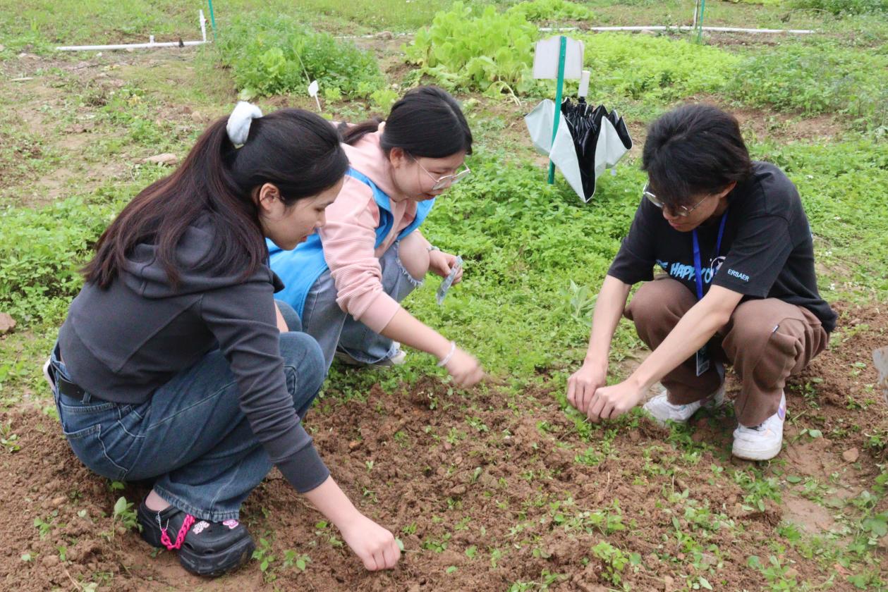 活动当天,文化旅游学院学生会骨干带着各种植小分队早早抵达“晓耕园”,大家满怀热情,脸上洋溢着恣意而期待的笑容。队长给每队的同学依次分发蔬果种子,并带领大家到工具收纳区领取耕种工具,有序前往文旅学院的地块进行种植。