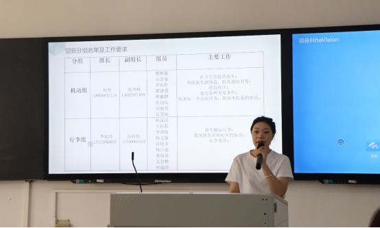 紧接着,学生会主席团成员何艳宣读《2022级迎新的工作流程》,公布了各小组负责人名单及联系方式。在场的迎新志愿者都明确了自己的工作任务。随后,主席团成员明朝燕向大家讲解整个迎新活动的时间安排以及注意事项,强调志愿者服务要求和纪律,力求各小组相互配合,遇到不能解决的问题要及时联络负责人,全体服务于学校的迎新工作。