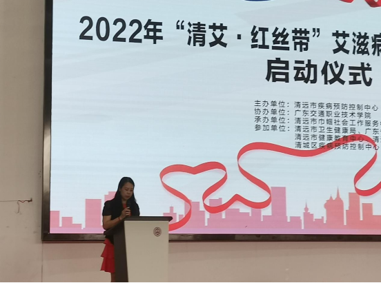 参加本次启动仪式的单位有清远市卫生健康局、广东省职教城(清远)事务中心、清远市疾病预防控制中心以及五支高校“清艾·红丝带”志愿服务队。活动伊始,清远市卫生健康局副局长丘静做活动致辞,她表示进一步推进“十四五”时期学校预防艾滋病教育工作,会让更多学生了解有关艾滋病防治的相关知识,提高对艾滋病正确认识及自我防护意识。同时呼吁大家要科学掌握防控方法,培养健康文明的生活方式,共创和谐、美好、健康的生活。号召青年学生主动履行防控职责,协助共同抗击艾滋病病毒。