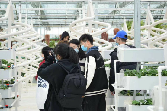 现代化的蔬菜大棚让同学们眼前一亮,以色列的农业滴灌技术、温室无土栽培的蔬菜给同学们上了一堂印象深刻的科技创新课。蔬菜在温室内茁壮成长,水果颗颗饱满显得格外可口,科技创新赋能加强了农村基层基础工作、推进体制机制创新、提高农村民生保障水平、有效衔接全面脱贫与乡村振兴。