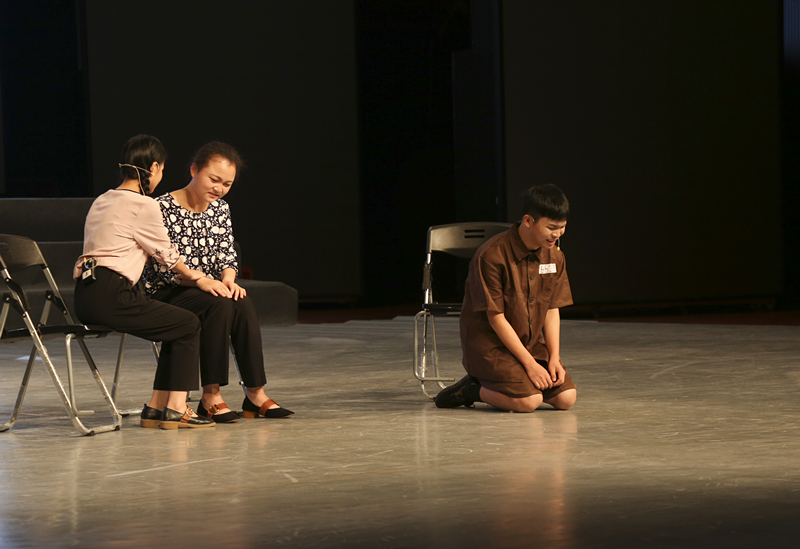图三:青少年活动中心朱健宁主任(左二)指导剧团排练