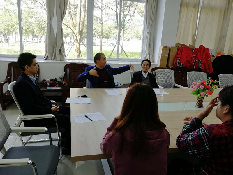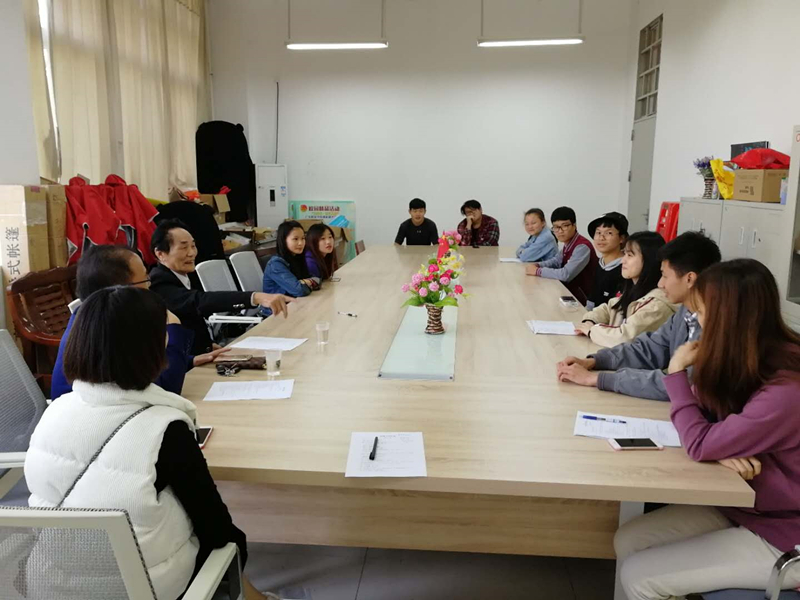 图二:剧本作者、清远市戏剧曲艺家协会原副主席何必(左三)来我校指导