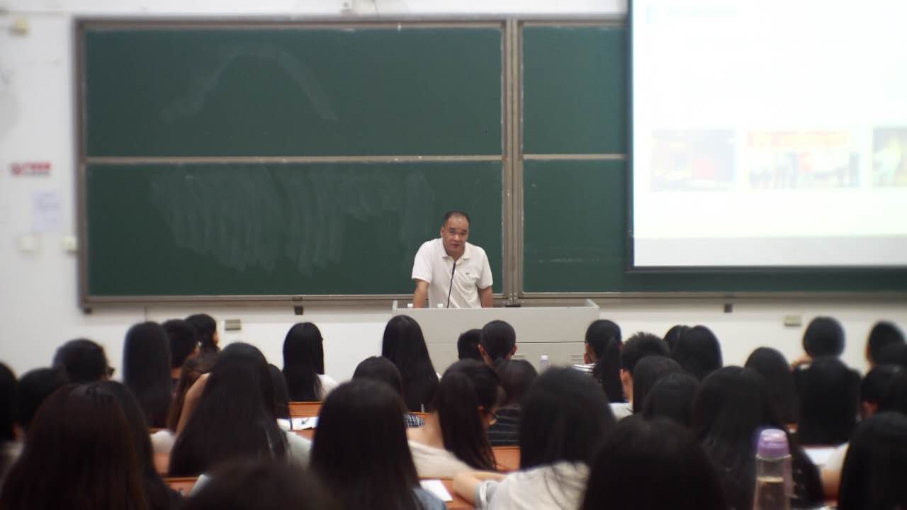 自我介绍后,刘荣总经理开始与同学们分享自己的职业生涯经验。他向现场同学们提问:“同学,你最擅长什么呢?”面对这个问题,同学们都开始自己的思考。刘先生回应道,如果找到自己擅长的技能,从而总结自己的能力是什么,才能更好地选择我们以后就业的方向。随后,刘荣先生从驰骋职场的基础生存秘诀、挖掘和展开你的想象力、桃花湖旅行的梦想与实践这三大方面展开讲座内容。