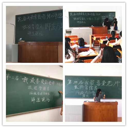 5月25日,2015级烹饪1班在清远校区教学楼419召开主题班会,开展评选“我最喜爱的老师”活动,院团委张一老师、旅游管理系熊汝鑫老师、黄隽老师出席了本次活动。活动开始由烹饪1班代表制作PPT介绍其专业的各任课老师,图文并茂地表达了对老师的敬爱之情。