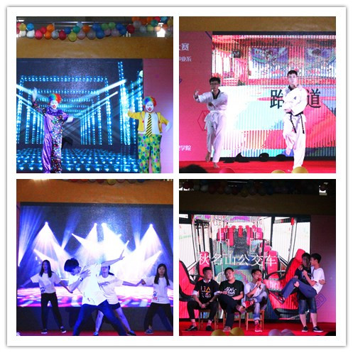 活动在胡家夏主任的致辞中正式拉开序幕。活动节目精彩纷呈:有优雅婉转的现代舞、配合无间的杯子舞、青春洋溢的歌曲、搞笑连连的小品、力量展现的跆拳道表演等,系艺术团主持队担任全场活动主持,系艺术团舞蹈队、话剧社承担间场表演。同学表演发挥得淋漓尽致,炫酷的发型,张扬不羁的服饰,逗趣的表情和夸张的动作,充分展现了90后的风采和个性。现场观众掌声连连,会场气氛活跃,阵阵欢呼声响遍整个体育馆。