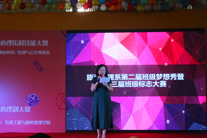 5月27日,在清远校区体育馆举行南华工商学院第六届大学生心理健康节之旅游管理系第二届班级梦想秀暨第三届班级标志大赛。本次大赛由学生工作处心理辅导中心主办,旅游管理系承办,旨在通过班集体活动,提高旅游管理系15级各班的团结度、认同感、归属感,同时树立学生的主人翁意识,落实博雅文化传承,实现文化育人、实践育人。