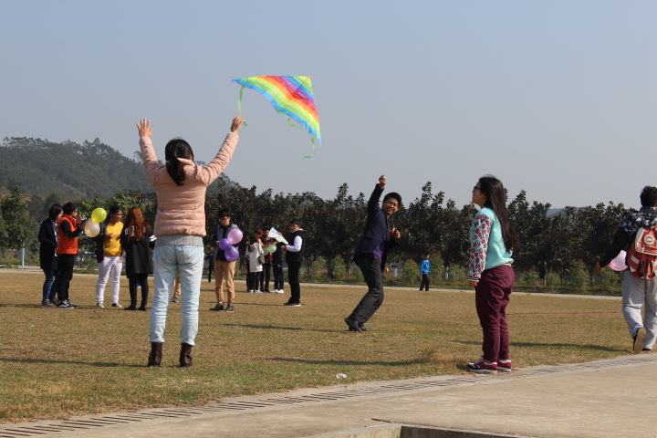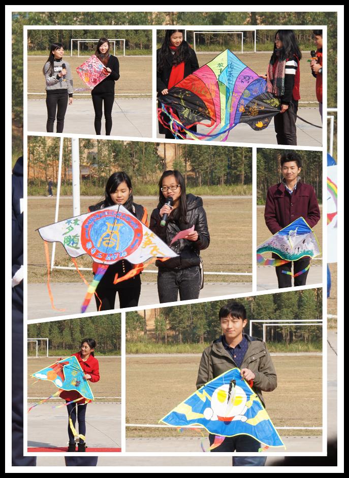 旅游管理系主任胡家夏老师、院团委副书记方永航老师、院团委刘晓玲老师、旅游管理系马佩佩老师和黄隽老师以及各二级学院、系学生代表应邀出席了本次活动。来自各二级学院、系的11支参赛队伍与观众一起将自己亲手制作的风筝放飞于南华的天空中。