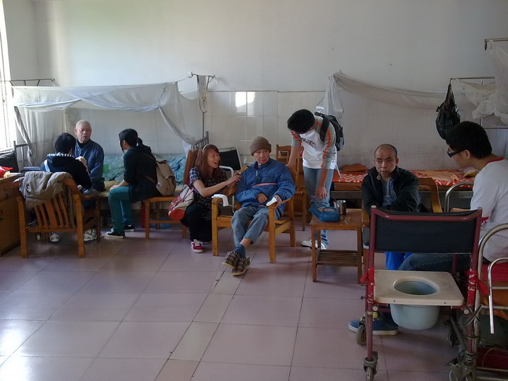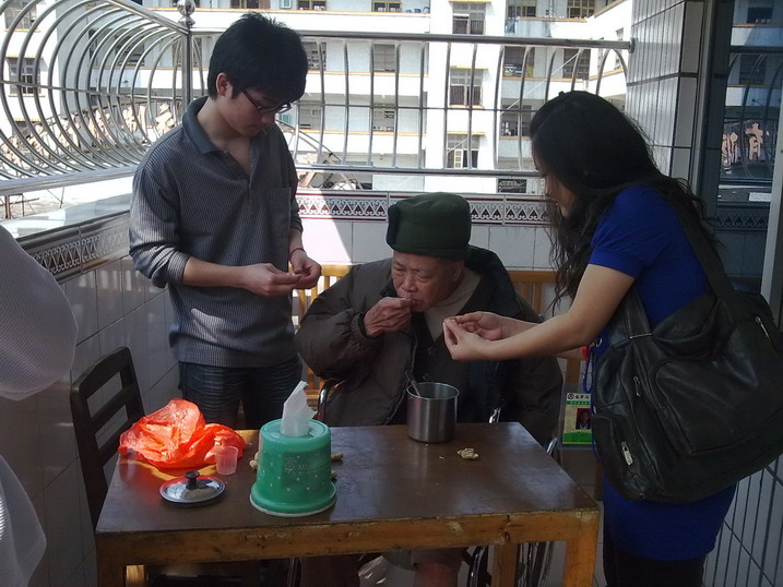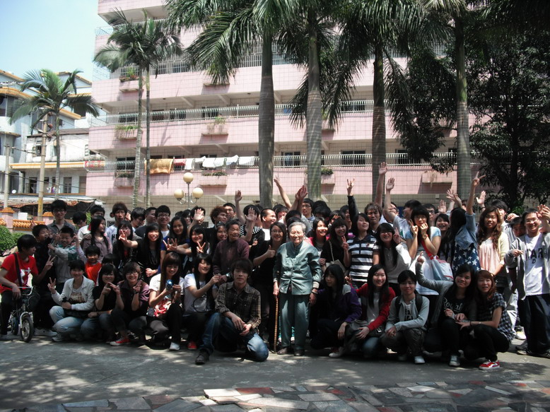 本次活动共有85人参加,共分17个小组。活动当天,青年志愿者们乘坐公共汽车到达清远市福利院后,根据活动计划,按照工作人员指示,分别到各个房间看望长者。在活动过程中,同学们面对长者们生理上的不便,并没感到畏惧,而是更用心地给予他们关心和关怀。同学们用自己的双手去温暖长者们冰冷的双手,为他们按摩,喂他们食物,为他们擦嘴,耐心地倾听长者们的话语,与他们聊天,与他们共同歌唱。长者们拉着同学们的手,如见到了亲人般的开心。几十岁的年龄差距再也不是代沟,彼此间发出的笑声谱写出一首爱的乐章,彼此间的合照呈现出一幅温暖和谐的画面。