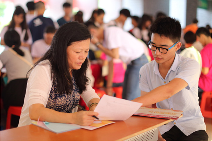 图三:经培训后“上岗”新生服务团队,为刚报到的同学提供服务