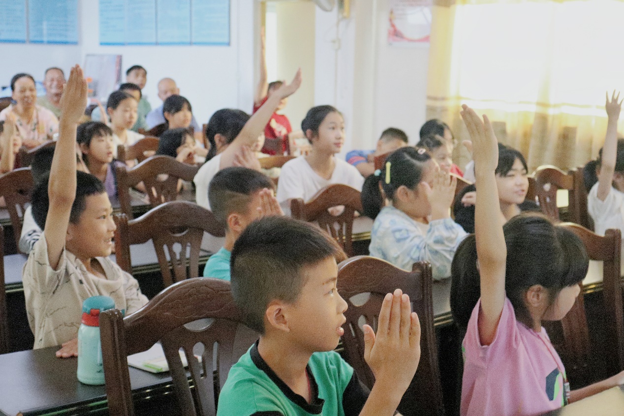 设计了以“艾”组词的问答互动环节,采用寓教于乐的形式,顺势引出了青少年预防艾滋病的知识普及。借由问答互动,现场氛围热烈非凡,充分激发了孩子们对学习健康知识的兴趣和热情。团队成员运用通俗易懂的表述,指明艾滋病病毒不会通过共用物品、一般生活接触、咳嗽打喷嚏以及蚊虫叮咬等方式传播,然而仍需时刻保持警惕,只要树立起正确的防护意识,养成优良的生活习惯,便能切实有效地预防艾滋病的传播。