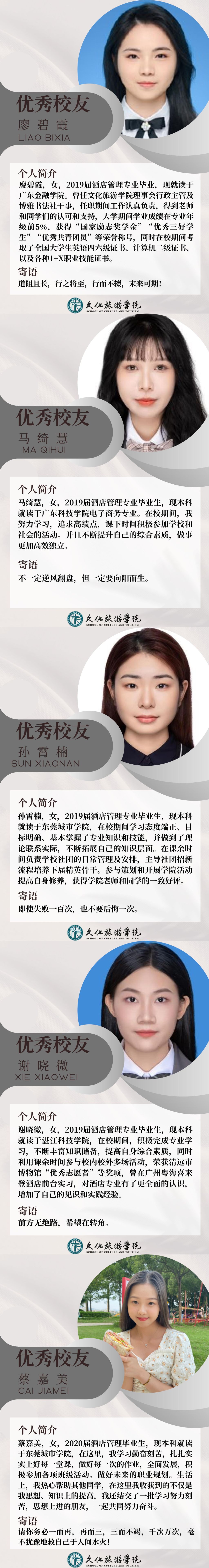酒管专业优秀毕业生——廖碧霞、马绮慧、孙霄楠、谢晓微、蔡嘉美