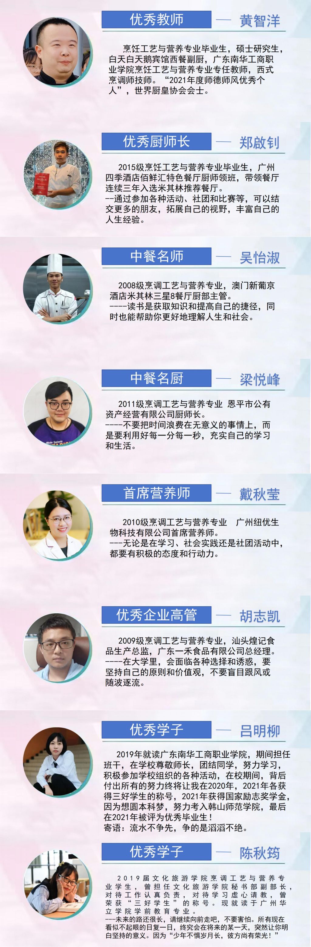 烹饪专业优秀毕业生——黄智洋、郑啟钊、吴怡淑、梁悦峰、戴秋莹、胡志凯、卢明柳、陈秋筠