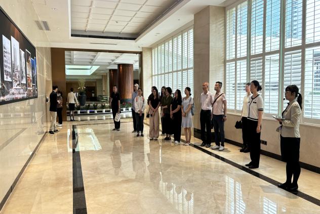 全体党员和教师在讲解员的带领下参观了广州花园酒店博物馆6个常设展厅、1个专业展演厅、1个360°环幕沉浸式多媒体厅、互动文创区、轻餐饮等配套设施,集展览展示、收藏研究、公共教育及文创生活体验为一体。该馆是国内首座以住宿业为主题的专业博物馆,六个常设展厅不同主题,从第一个的展厅介绍古今中外的住宿业的发展史作为切入,通过通过文献、藏品与图像、影像等方式,让各位党员及教师沉浸式感受广州酒店历史文化的演变,感受住宿业的历史文明以及千年商都的发展变迁,回顾广州酒店伴随城市经济社会发展的故事。广州花园酒店建于1985年,作为中国改革开放的标志之一,它与时代同呼吸、共命运,是广州一张亮眼的城市名片。