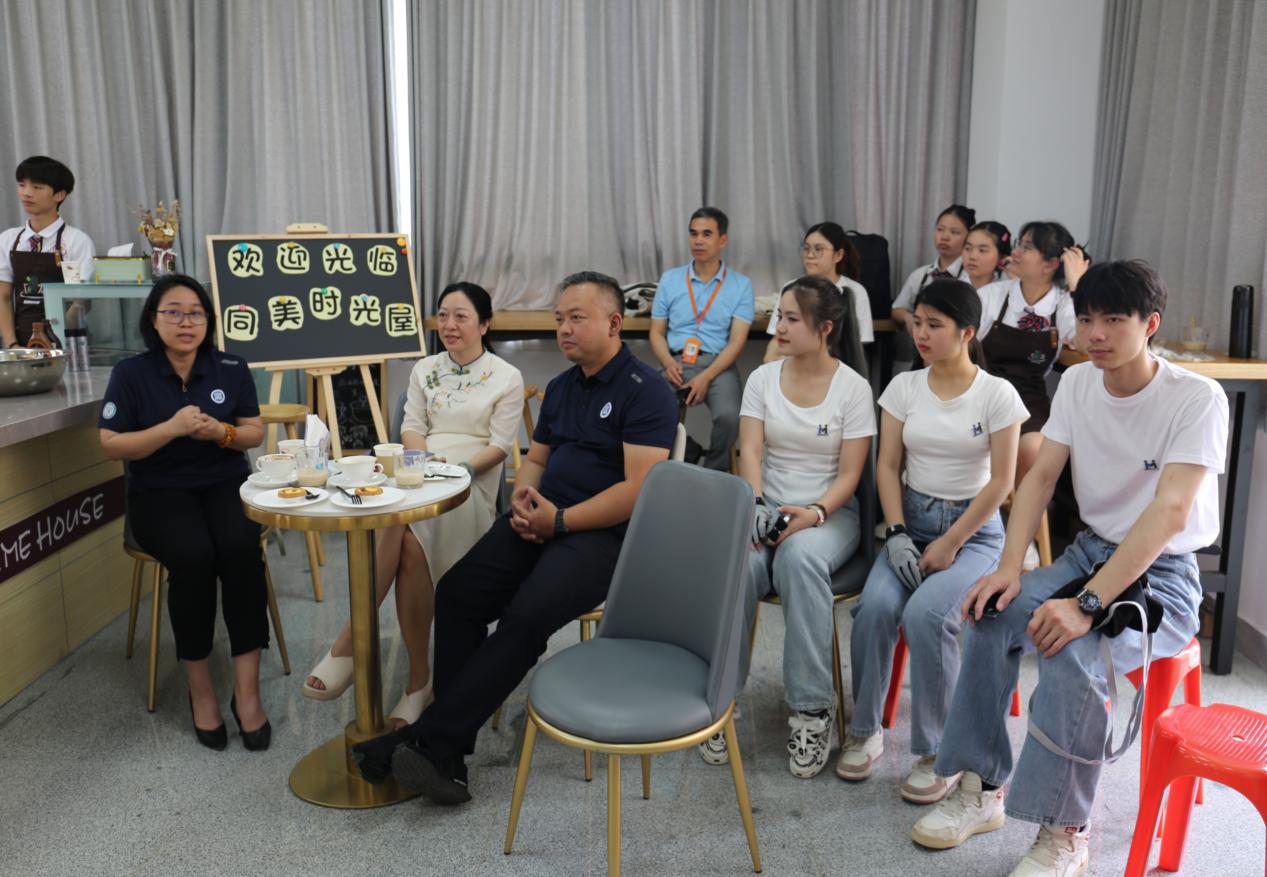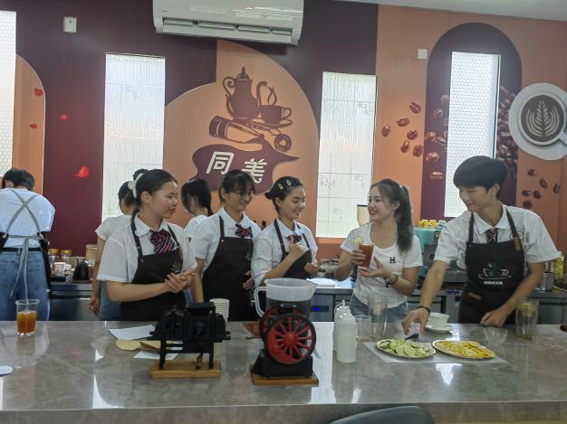随后,双方师生在王晓强老师的指导下完成糕点制作,来到“同美时光屋”展开时尚饮品的技艺切磋。大家在轻松愉快的气氛下进行了交流。