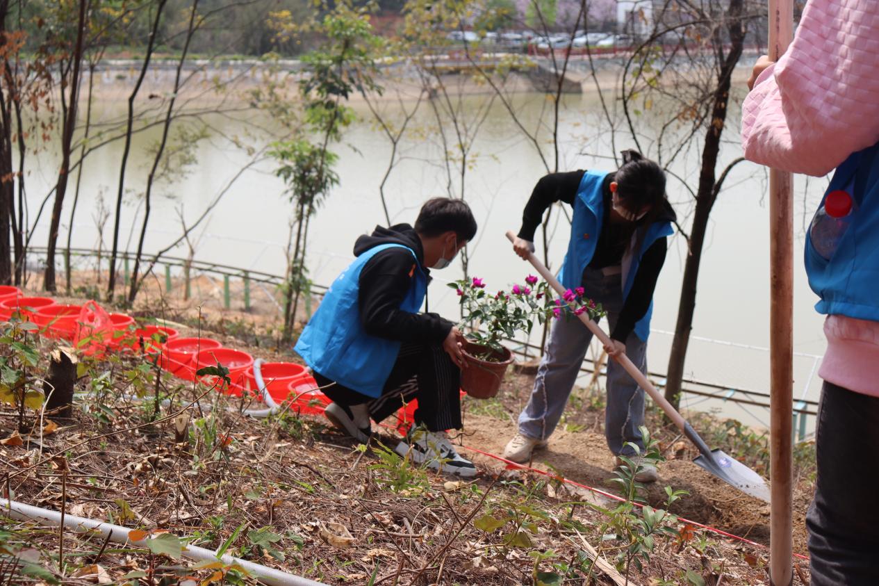 活动现场,文化旅游学院党支部师生与共建单位清远市旅游协会党支部、清远市牛鱼嘴生态旅游发展有限公司党支部、清远市银盏温泉开放有限责任公司党总支共同参与了种植市花的活动,为景区风光再增添一丝美丽。