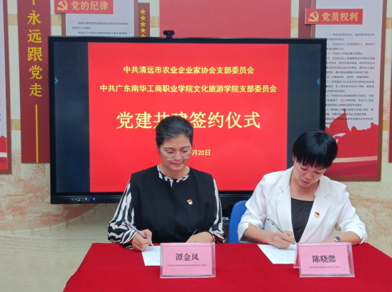 会议伊始,清远市农业企业家协会党支部书记、秘书长陈晓懿致欢迎辞,她表示希望通过协、校、企三方党建共建,促进产教融合、共育人才,助力乡村振兴。随后,副秘书长韩志武介绍了清远市农业企业家协会的发展历程及主要成果。我校酒店管理系主任陈丽芳介绍了学校、文化旅游学院以及文化旅游学院党支部的建设成果。来自清远市高谷膳食配送与农产品检测有限公司的何洁雯副总经理、高谷联合党支部书记侯静宜分别介绍了高谷公司发展、主要经营项目以及高谷联合党支部创立发展的过程。