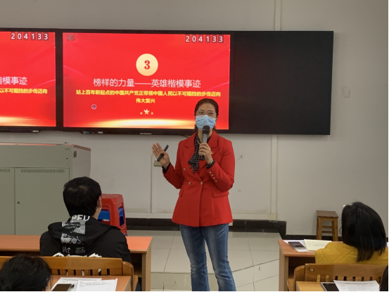 最后,谭金凤书记以“榜样的力量”为题,讲述了优秀党员张桂梅、张定宇的事迹,同时让同学们分享自己心中的榜样。他们的精神激励着我们向前,向榜样学习,肩负担当,为国家的发展贡献自己的力量!