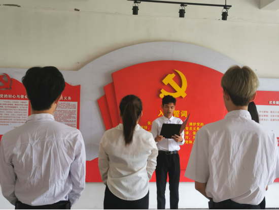 入党仪式结束后,党员教师黄隽带领预备党员们在党员活动中心进行党史教育学习活动。希望全体预备党员能够抓住党史学习教育活动的机会,注重加强理论学习,增强党性修养,站稳政治立场,做学业上的标杆,行动上的灯塔,为社会发展作出应有的贡献。