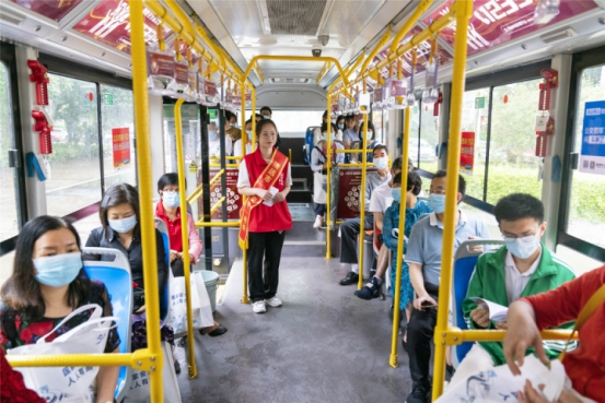 图一 学生志愿者在“国安号”公交上作宣传